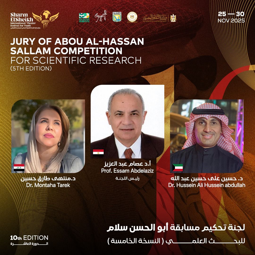 أعلنت إدارة مهرجان شرم الشيخ الدولي للمسرح الشبابي، برئاسة المخرج مازن الغرباوي، عن قوام لجنة تحكيم مسابقة “أبو الحسن سلام للبحث العلمي” في نسختها الخامسة، ضمن فعاليات الدورة العاشرة من المهرجان الذي من المقرر انعقاده في الفترة من 25 وحتى 30 نوفمبر المقبل.