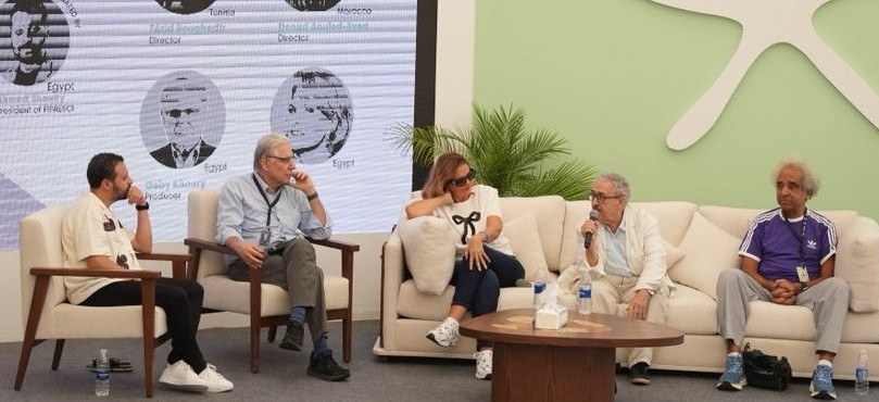 في اليوم الرابع من فعاليات الدورة الثامنة لمهرجان الجونة السينمائي، عقدت جلسة حوارية بعنوان “رحلة مع الأستاذ: من عدسته إلى عوالمهم الخاصة – مئوية يوسف شاهين”، أدارها أحمد شوقي، مدير منصة سيني جونة للتمويل، وشارك فيها المخرج فريد بوغدير، والمخرج داوود أولاد السيد، والمنتج جابي خوري، والفنانة يسرا