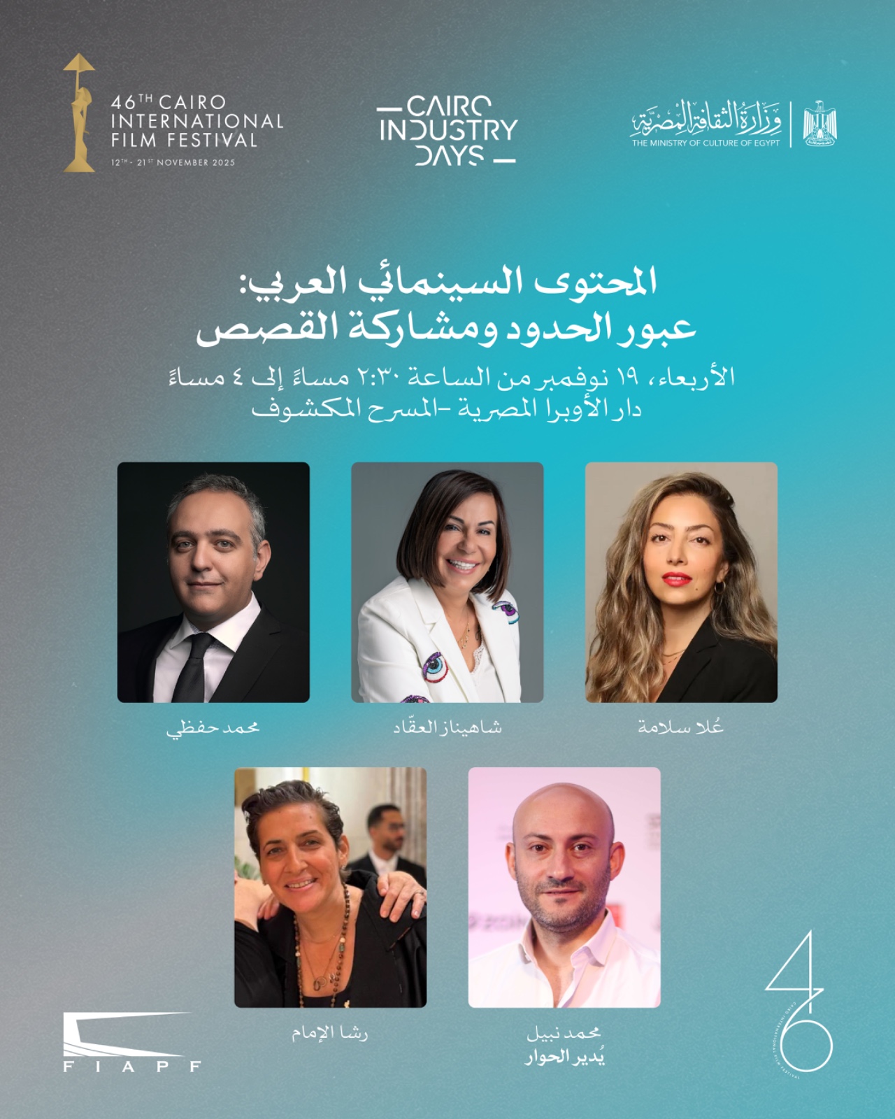 في إطار فعاليات أيام القاهرة لصناعة السينما المقامة ضمن أنشطة الدورة الـ46 لمهرجان القاهرة السينمائي الدولي، يستضيف المسرح المكشوف بدار الأوبرا المصرية اليوم الأربعاء 19 نوفمبر، حلقة نقاشية بعنوان “المحتوى السينمائي العربي: عبور الحدود ومشاركة القصص”، وذلك من الساعة 2:30 حتى 4:00 مساء، ويدير الجلسة الصحفي والناقد السينمائي محمد نبيل.