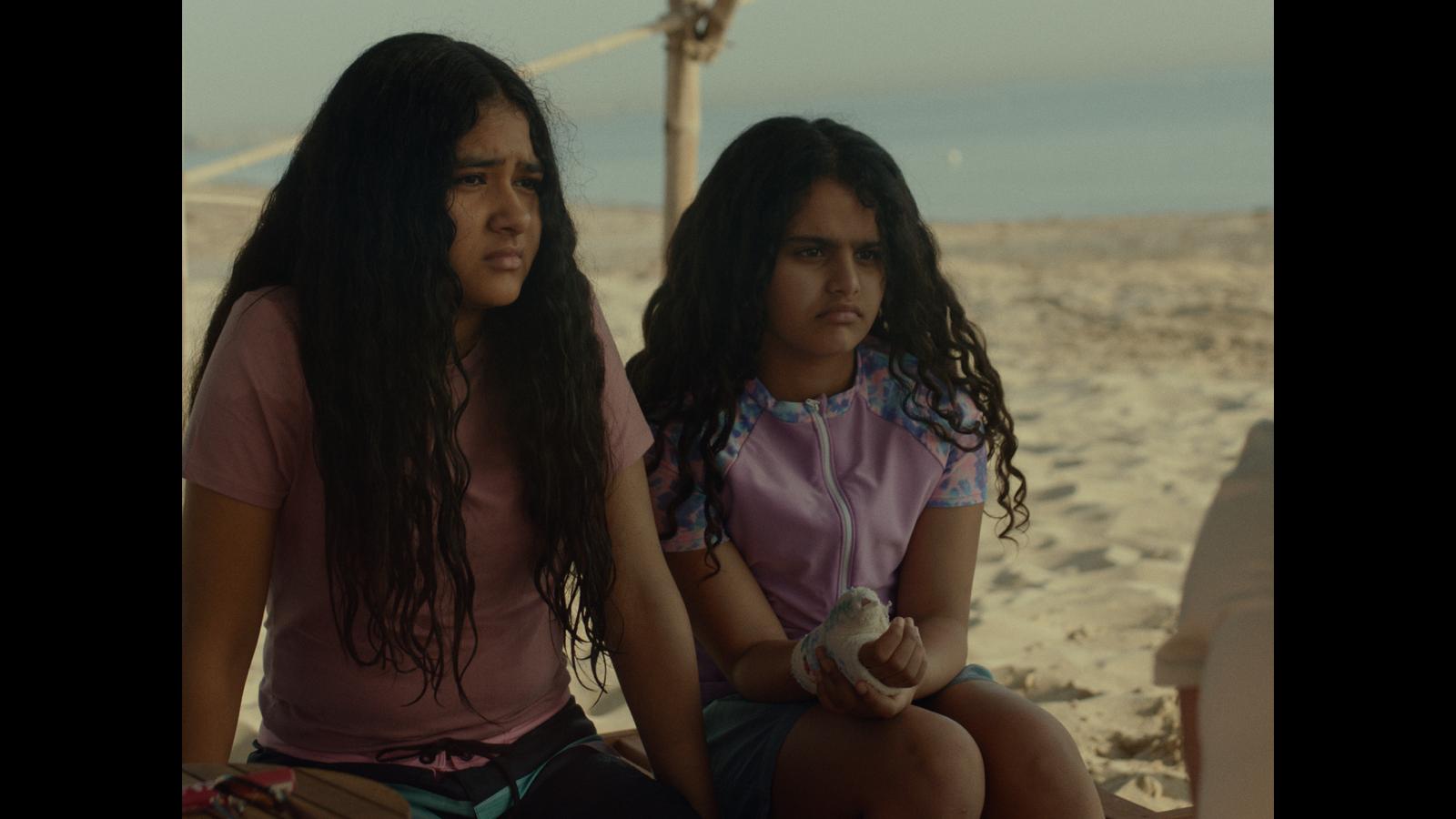 تمضي الحكاية لتصل تلك الطفلة اللاهثة إلى مكان آخر ليس ببعيد عن شاليه أسرتها، حيث تقترب من فتاتين أكبر منها بعض الشيء تلهوان في البحر.