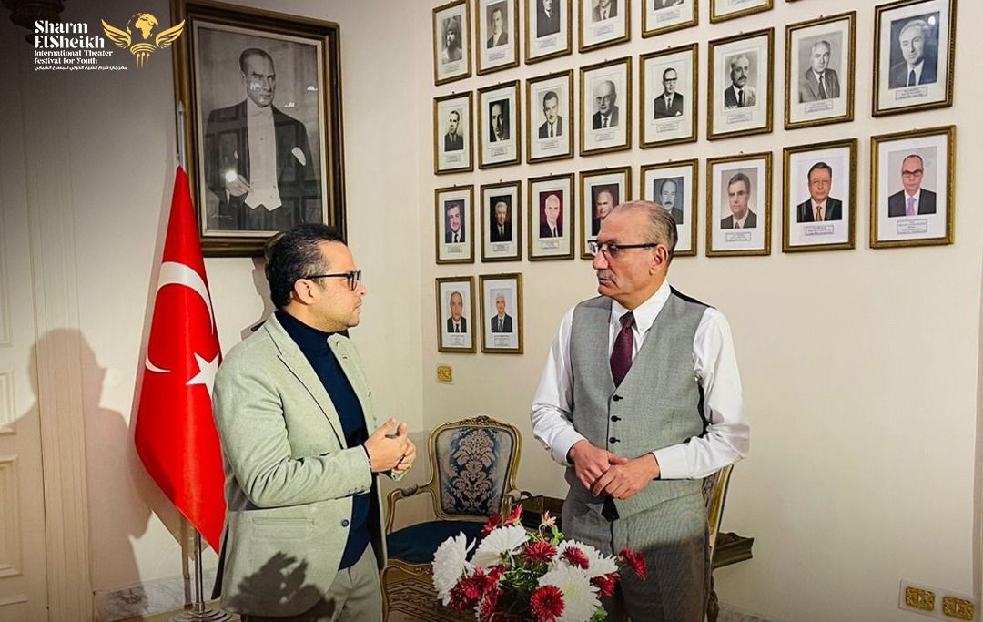 في خطوة تعكس تنامي الحراك الثقافي بين مصر وتركيا، التقى المخرج والفنان مازن الغرباوي، مؤسس ورئيس مهرجان شرم الشيخ الدولي للمسرح الشبابي (SITFY)، بسعادة السفير صالح موطلو شن، سفير الجمهورية التركية لدى القاهرة، وذلك يوم الخميس 15 يناير 2026، بمقر السفارة التركية.