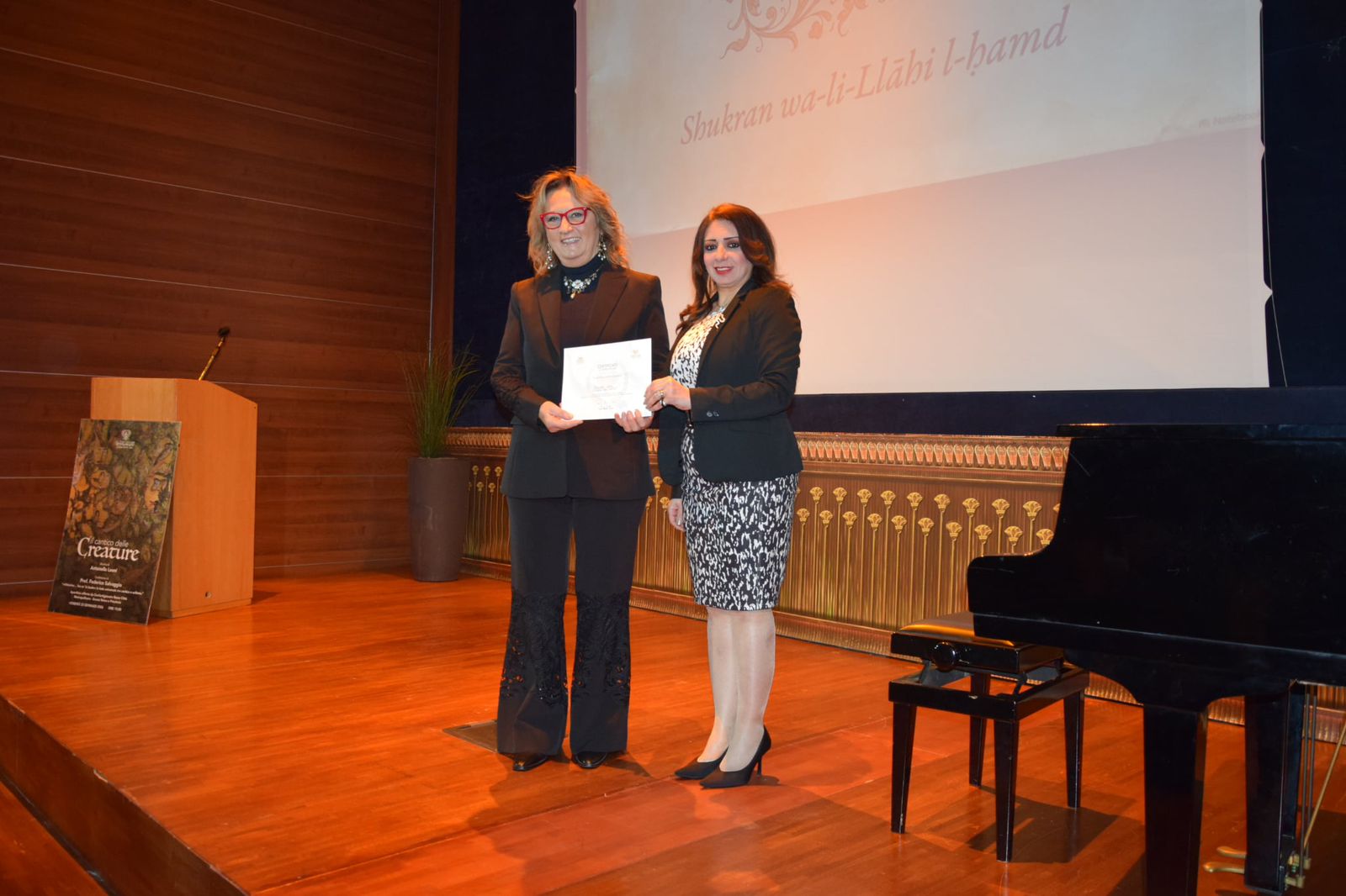 وفي ختام الفعالية، قامت الدكتورة رانيا يحيى بتكريم الأساتذة المشاركين، إلى جانب تكريم الدكتورة نجاة عقيلة، كما تم توزيع شهادات مشاركة على الطلاب تقديرًا لحرصهم على التفاعل والاستفادة. واختُتم اليوم بالتقاط صورة تذكارية جماعية جمعت القائمين على الورش والطلاب المشاركين.