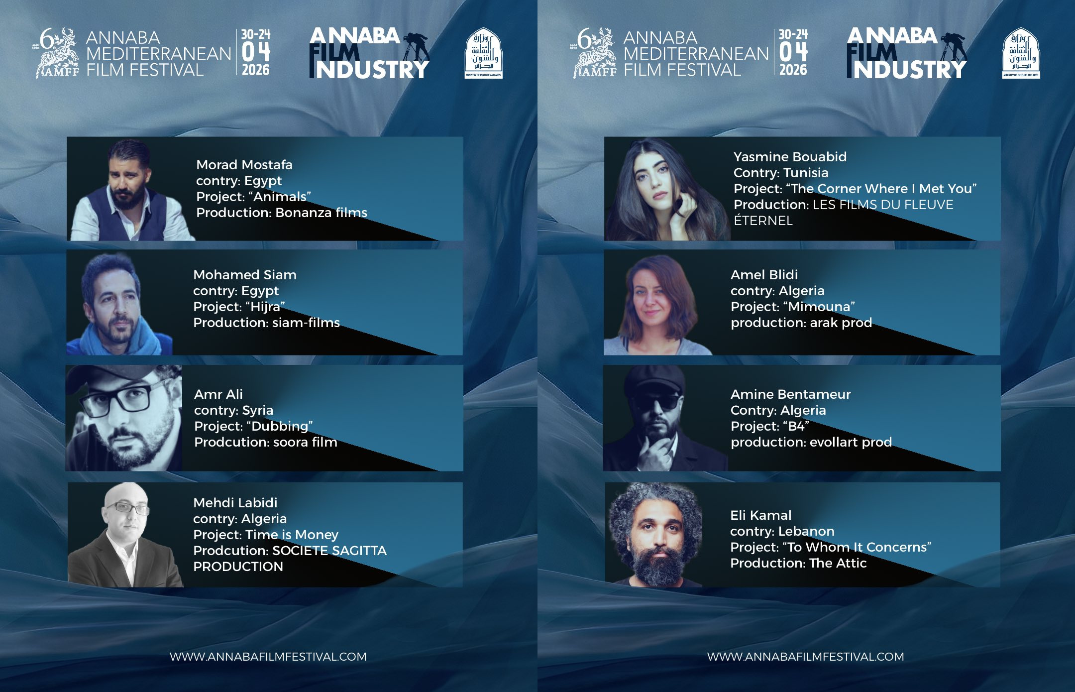 أعلنت إدارة مهرجان عنابة للفيلم المتوسطي ، عن اختيار المشاريع المشاركة في فئة “التطوير” ، ضمن برنامج أيام عنابة لصناعة السينما، وذلك في إطار فعاليات الدورة السادسة للمهرجان ، التي سيتم إقامتها من 24 إلى 30 أبريل 2026.