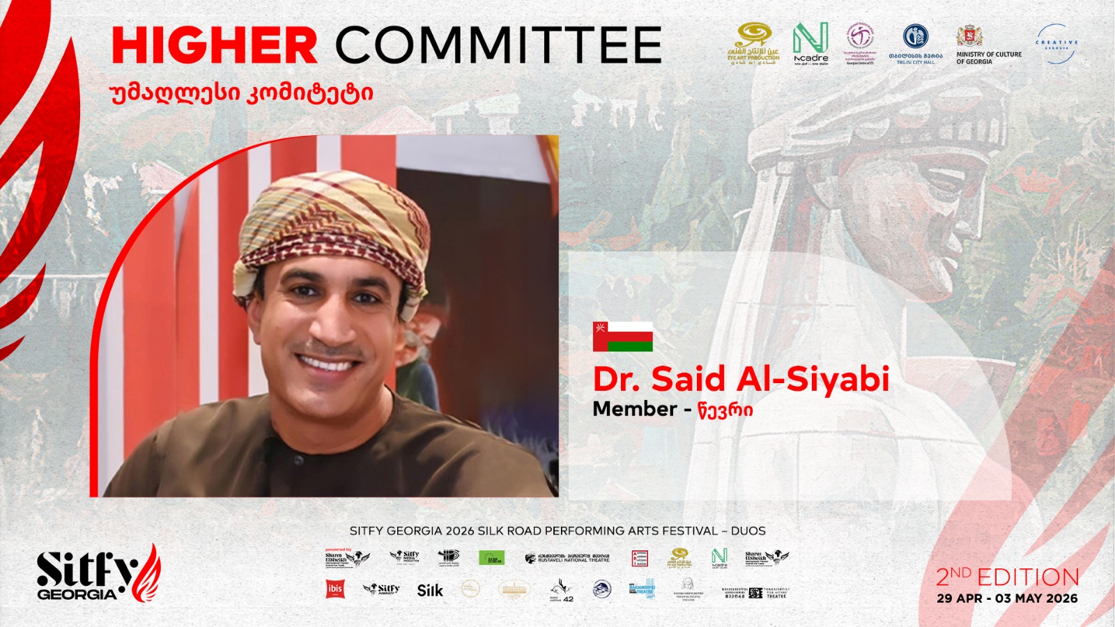 ضمّت اللجنة العليا نخبة من الأسماء الأكاديمية والمسرحية من عدة دول، من بينها ليفان خيتاجوري في منصب الرئيس التنفيذي، إلى جانب إنجي البستاوي كمدير تنفيذي مشارك، وسعيد السيابي، ويوري مغبريشفيلي، إضافة إلى المخرج دافيد ساكفاريليدزي.